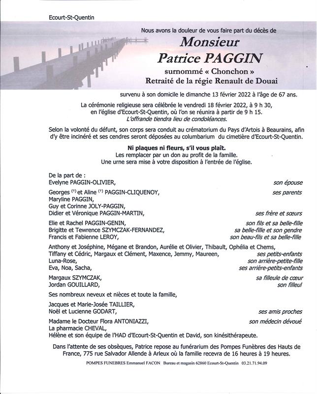 Décédé à Écourt-Saint-Quentin (62860, France) le dimanche 13 février 2022 à l'âge de 67 ans