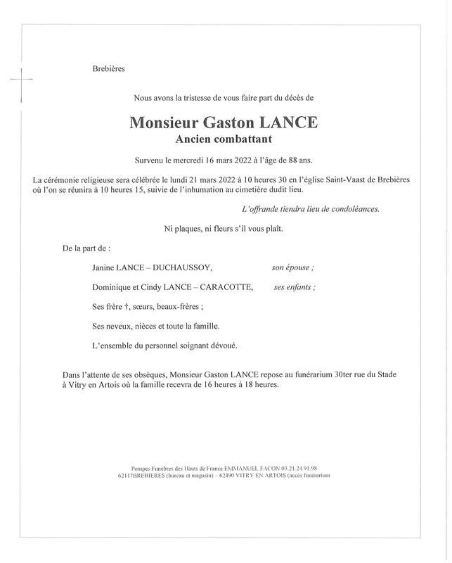 Monsieur Gaston LANCE