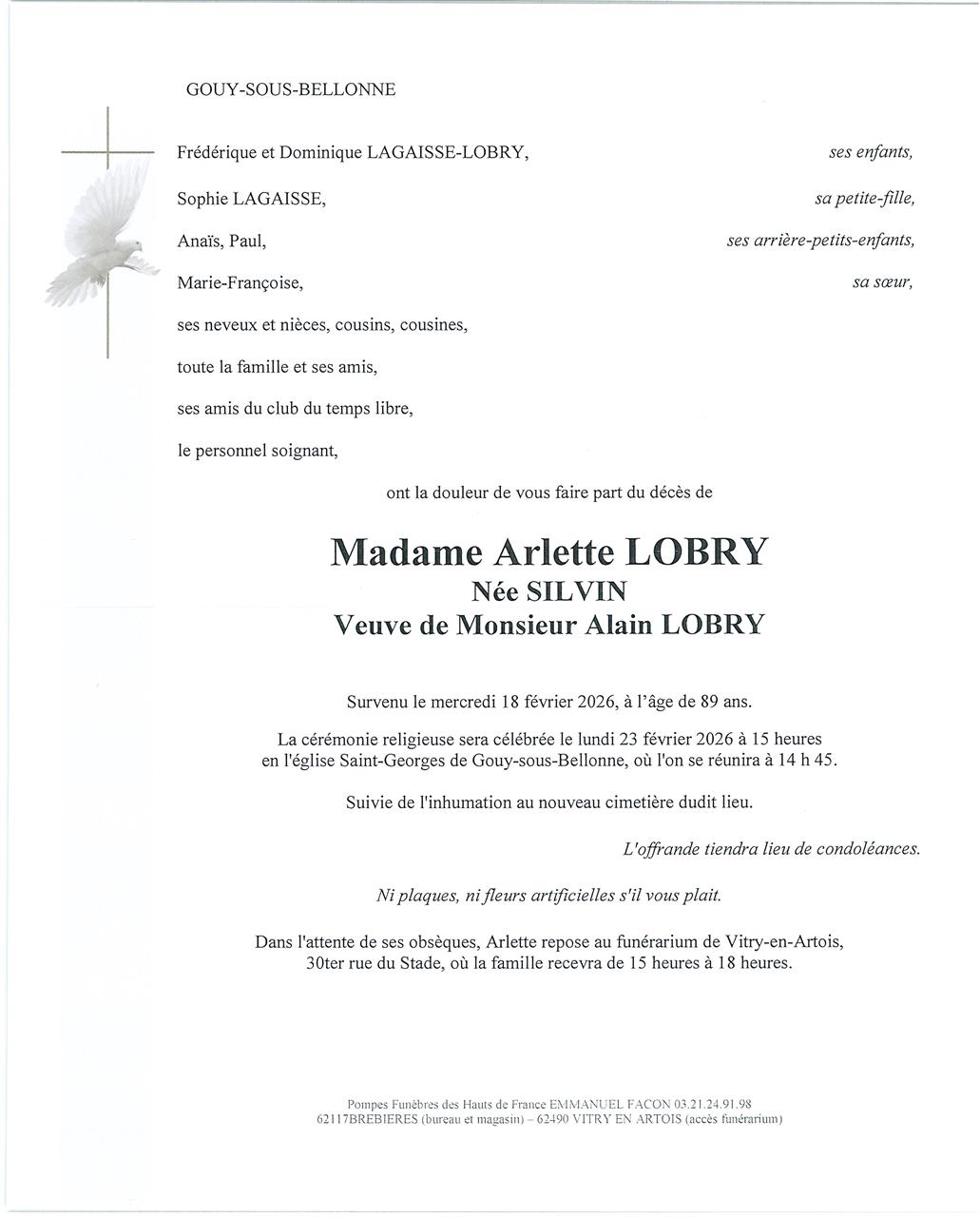 Madame Arlette, Andrée, Renée LOBRY née SILVIN