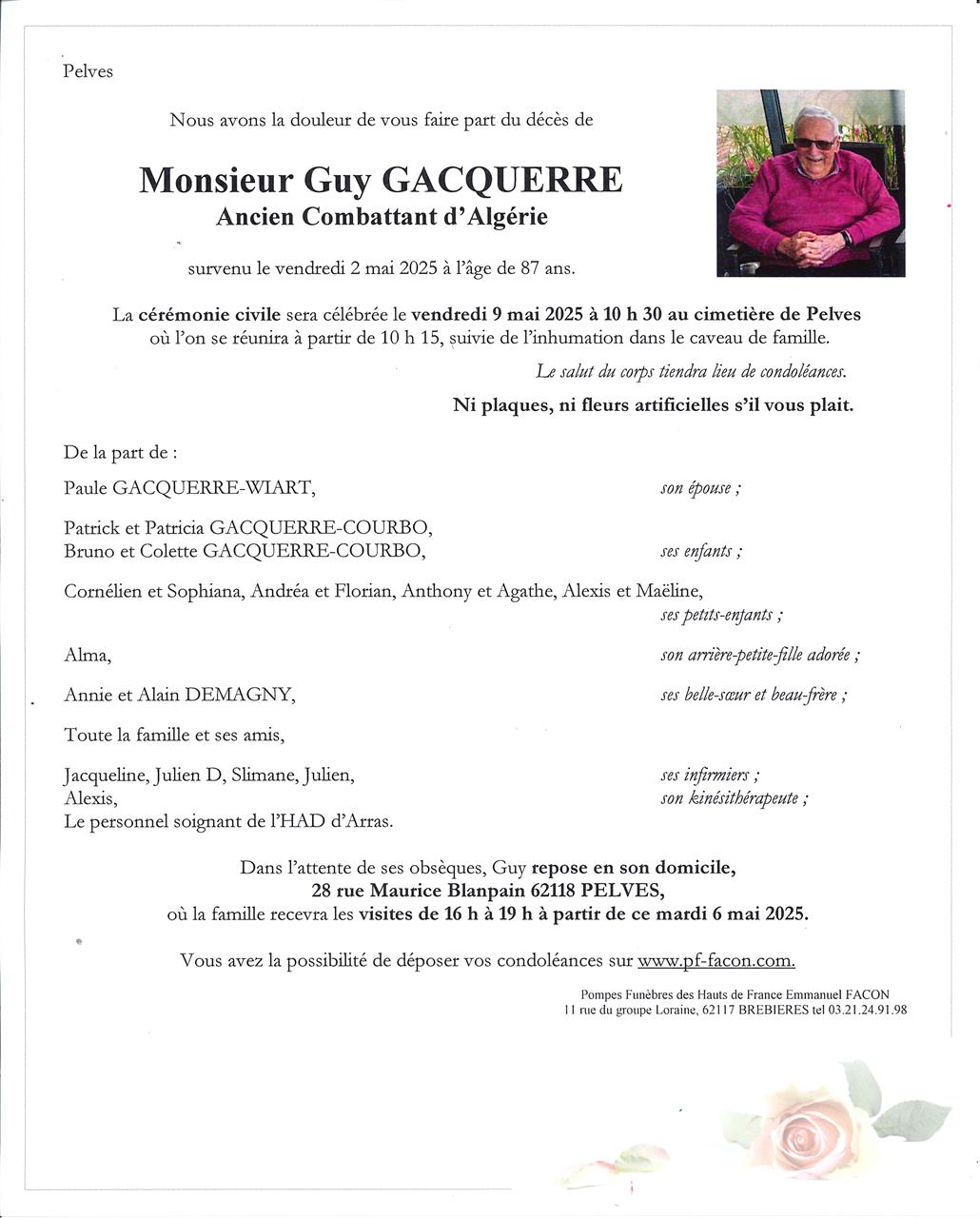 Décédé à Pelves (62118, France) le vendredi 2 mai 2025 à l'âge de 87 ans