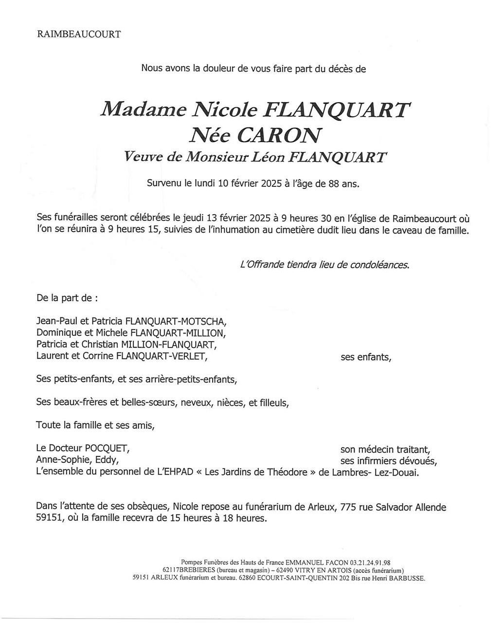 Madame Nicole FLANQUART née CARON