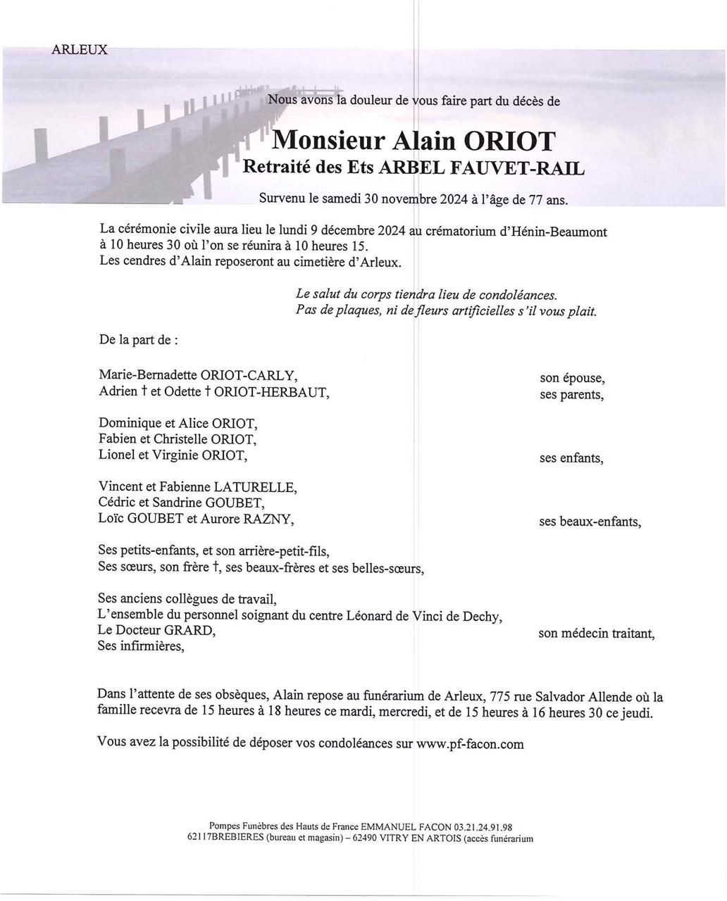 Décédé à Dechy (59187, France) le samedi 30 novembre 2024 à l'âge de 77 ans