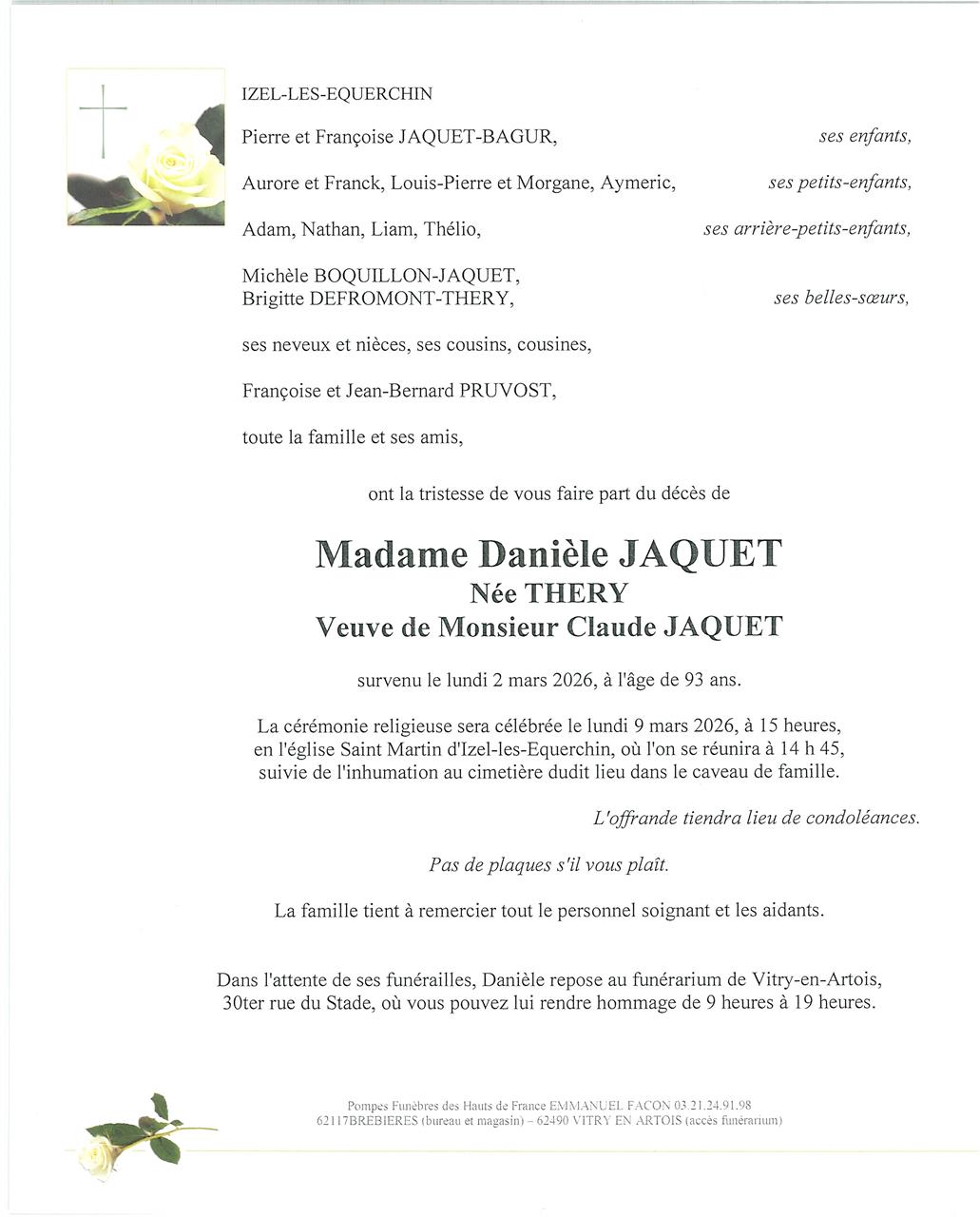 Décédée à Marly-la-Ville (95670, France) le lundi 2 mars 2026 à l'âge de 93 ans