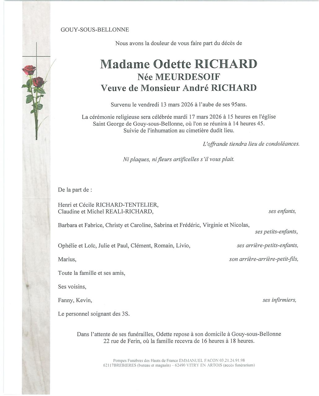 Madame Odette, Catherine, Augustine RICHARD née MEURDESOIF