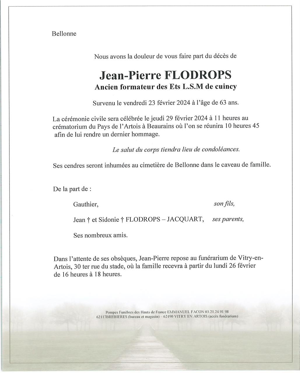Monsieur Jean-Pierre FLODROPS