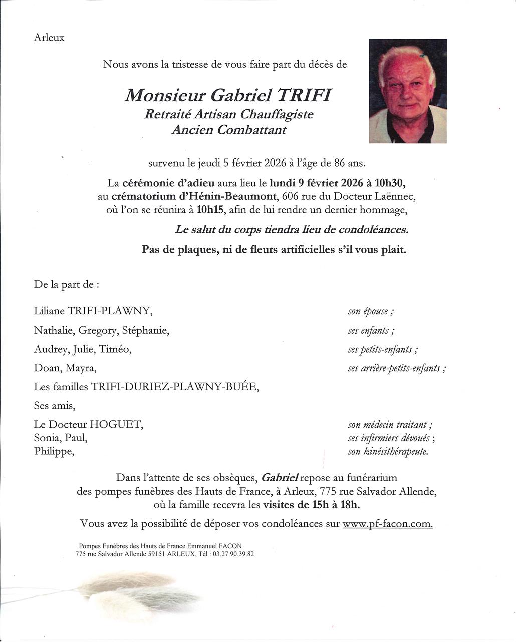Décédé à Lille (59000, France) le jeudi 5 février 2026 à l'âge de 86 ans