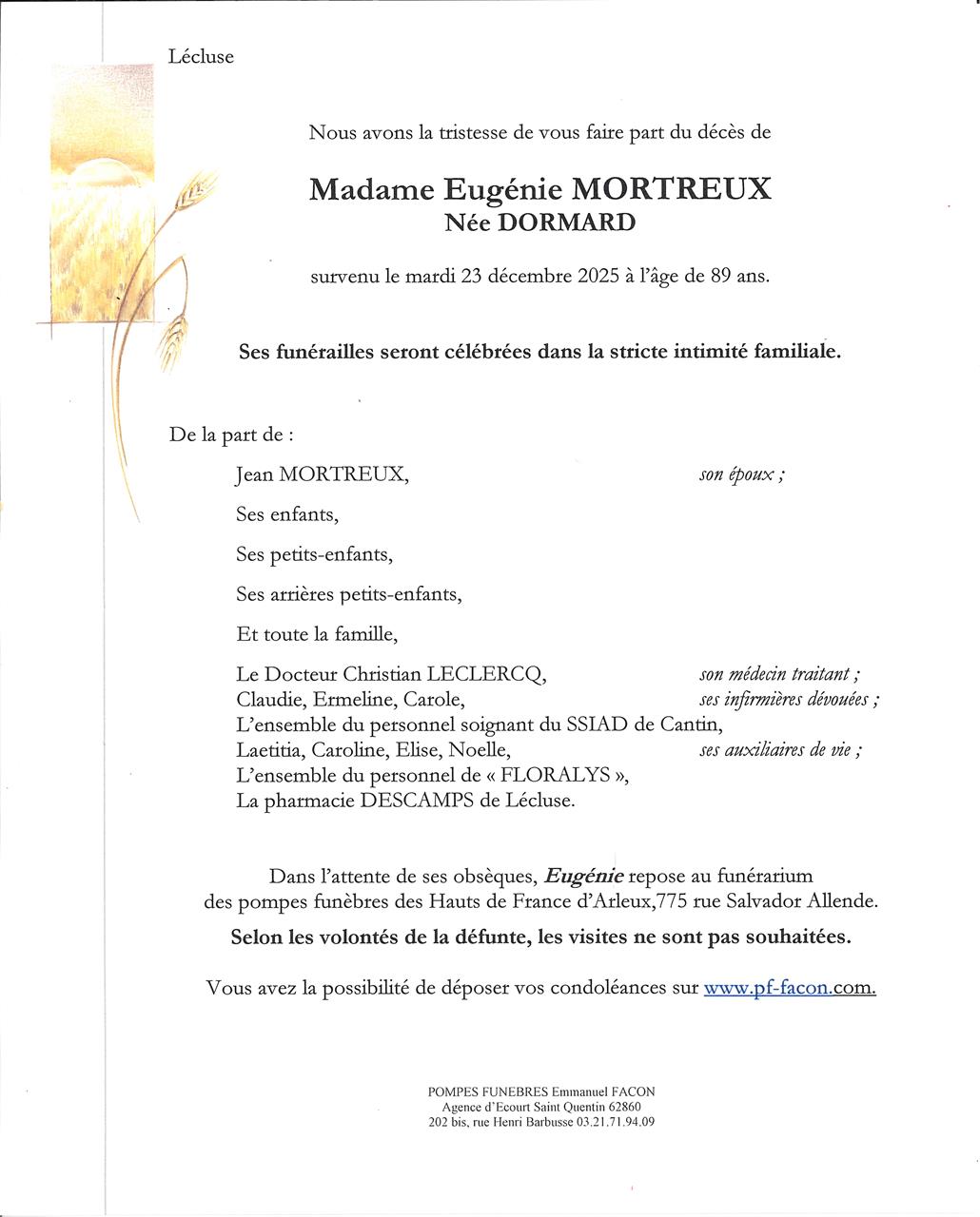 Madame Eugénie MORTREUX née DORMARD