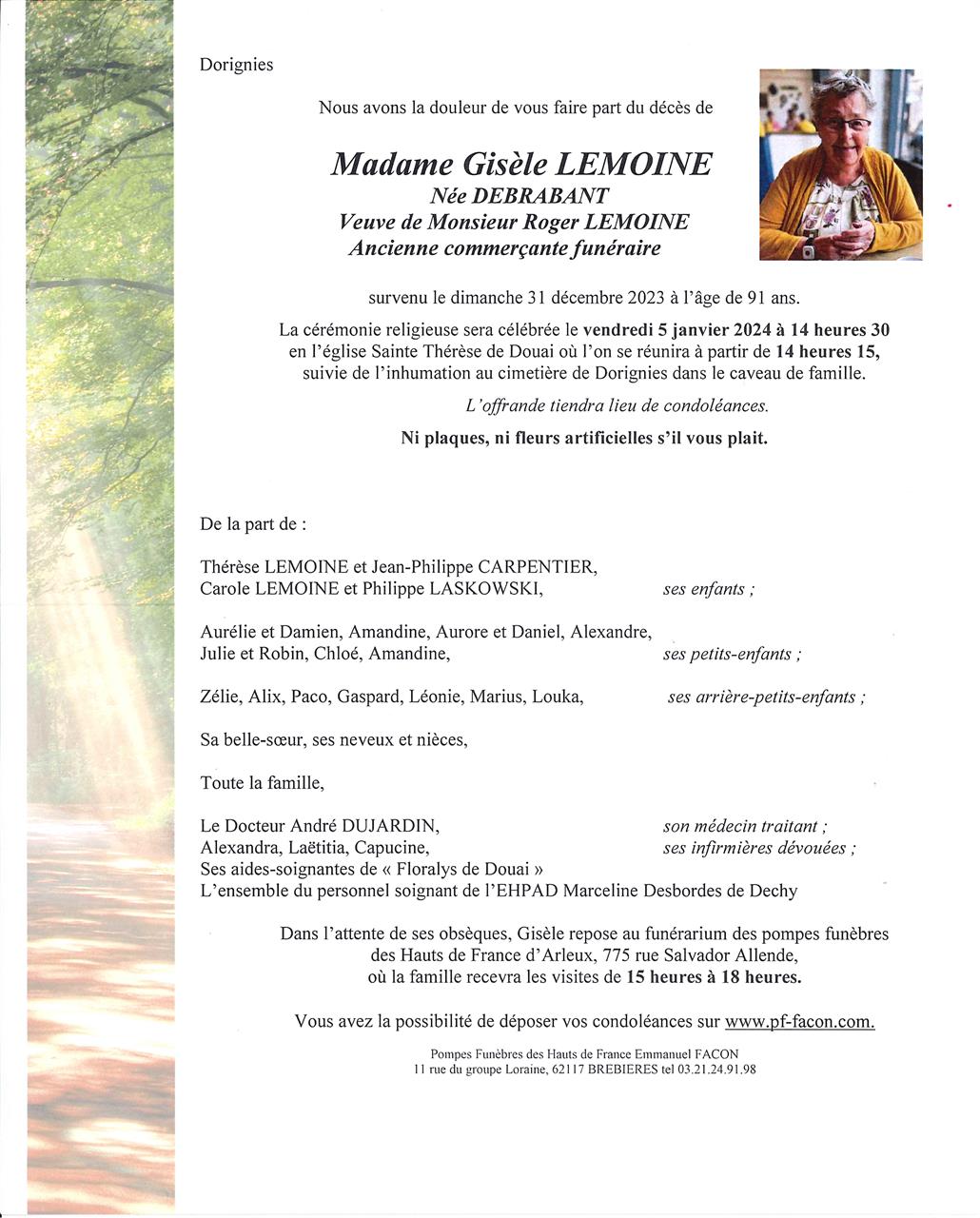 Décédée à Dechy (59187, France) le dimanche 31 décembre 2023 à l'âge de 91 ans