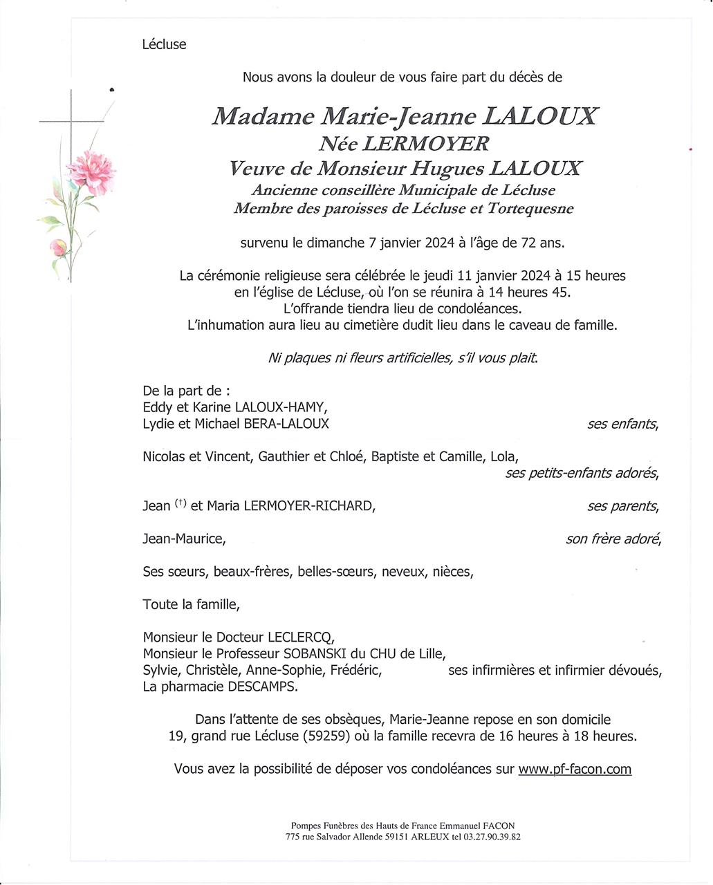 Madame Marie-Jeanne LALOUX née LERMOYER