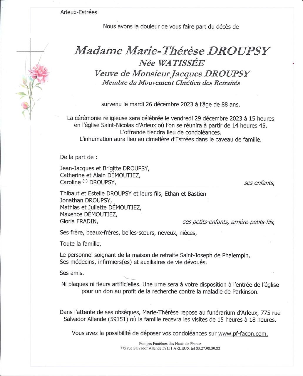 Madame Marie-Thérèse DROUPSY née WATISSEE
