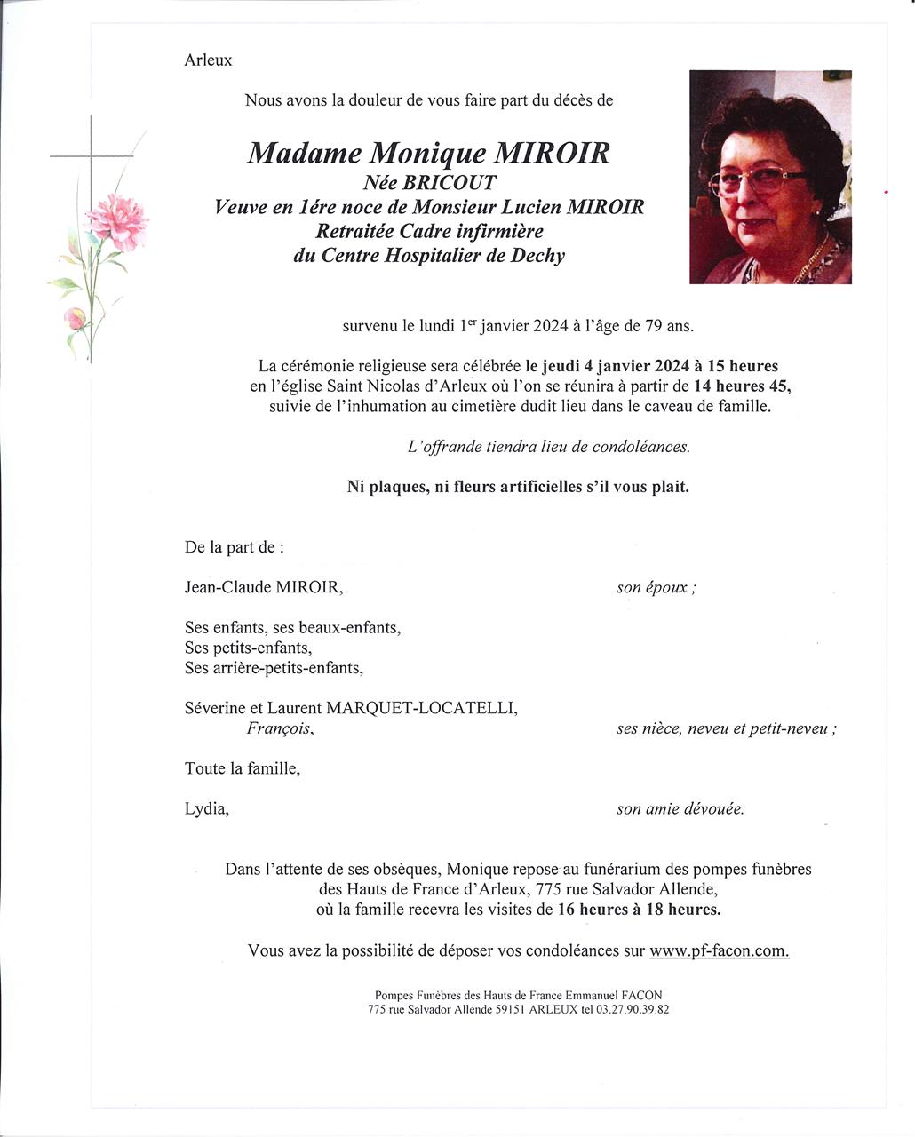 Madame MONIQUE MIROIR née BRICOUT