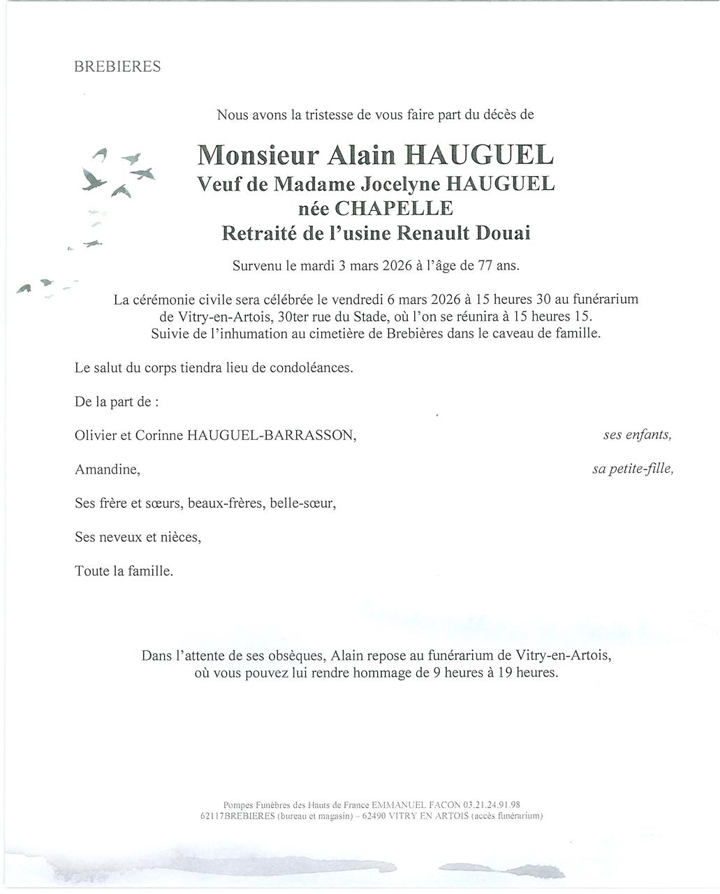 Monsieur Alain, Roger, Raphaël, Henri HAUGUEL