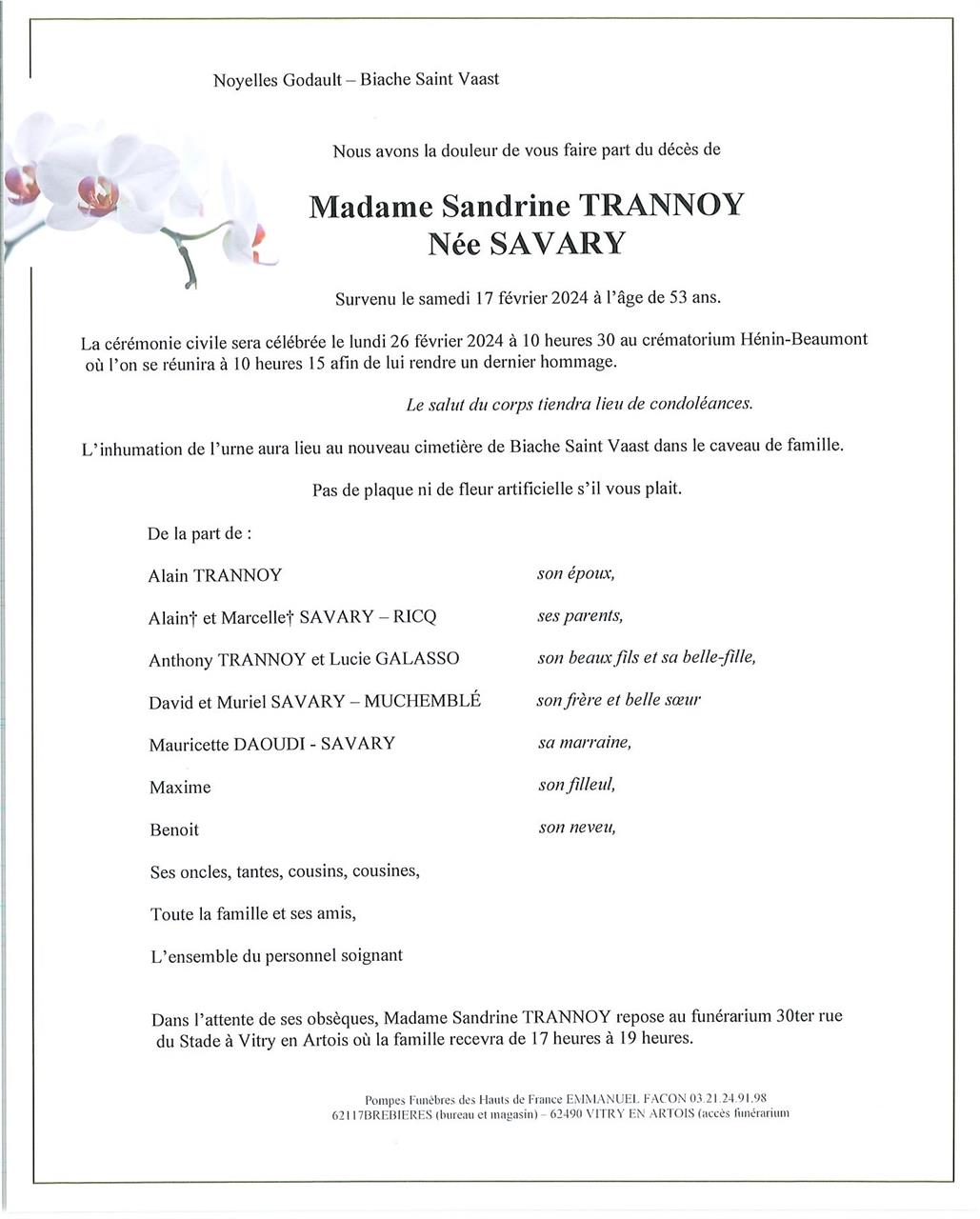 Epouse de Monsieur Alain, Georges, Louis TRANNOY