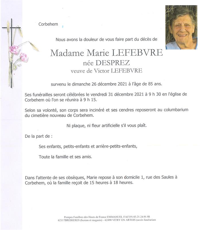 Madame Marie LEFEBVRE née DESPREZ