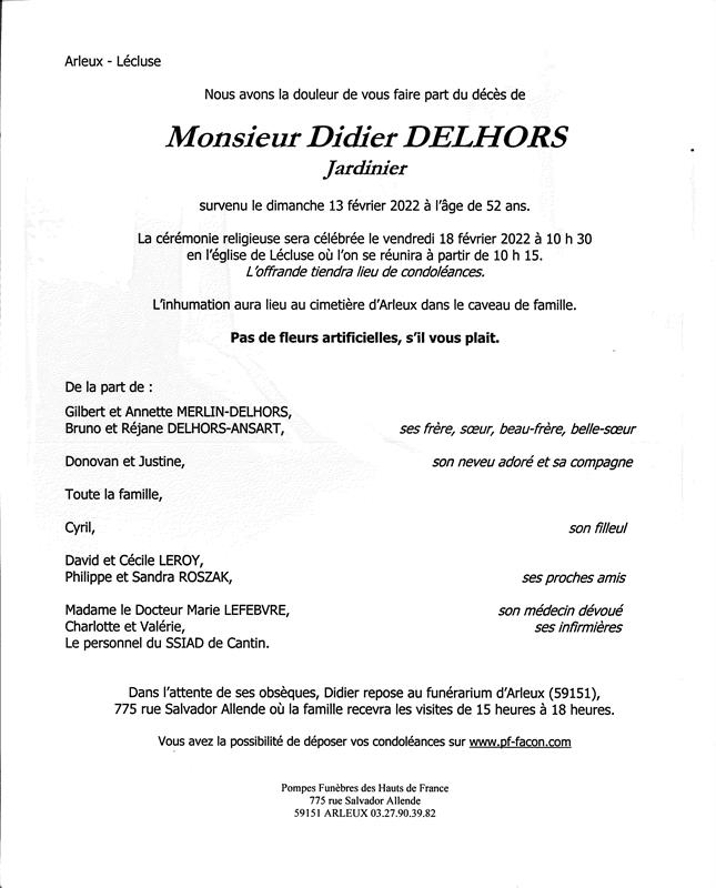 Décédé à Dechy (59187, France) le dimanche 13 février 2022 à l'âge de 52 ans