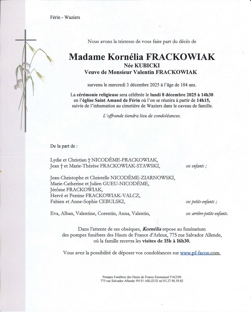 Madame Kornélia FRACKOWIAK née KUBICKI