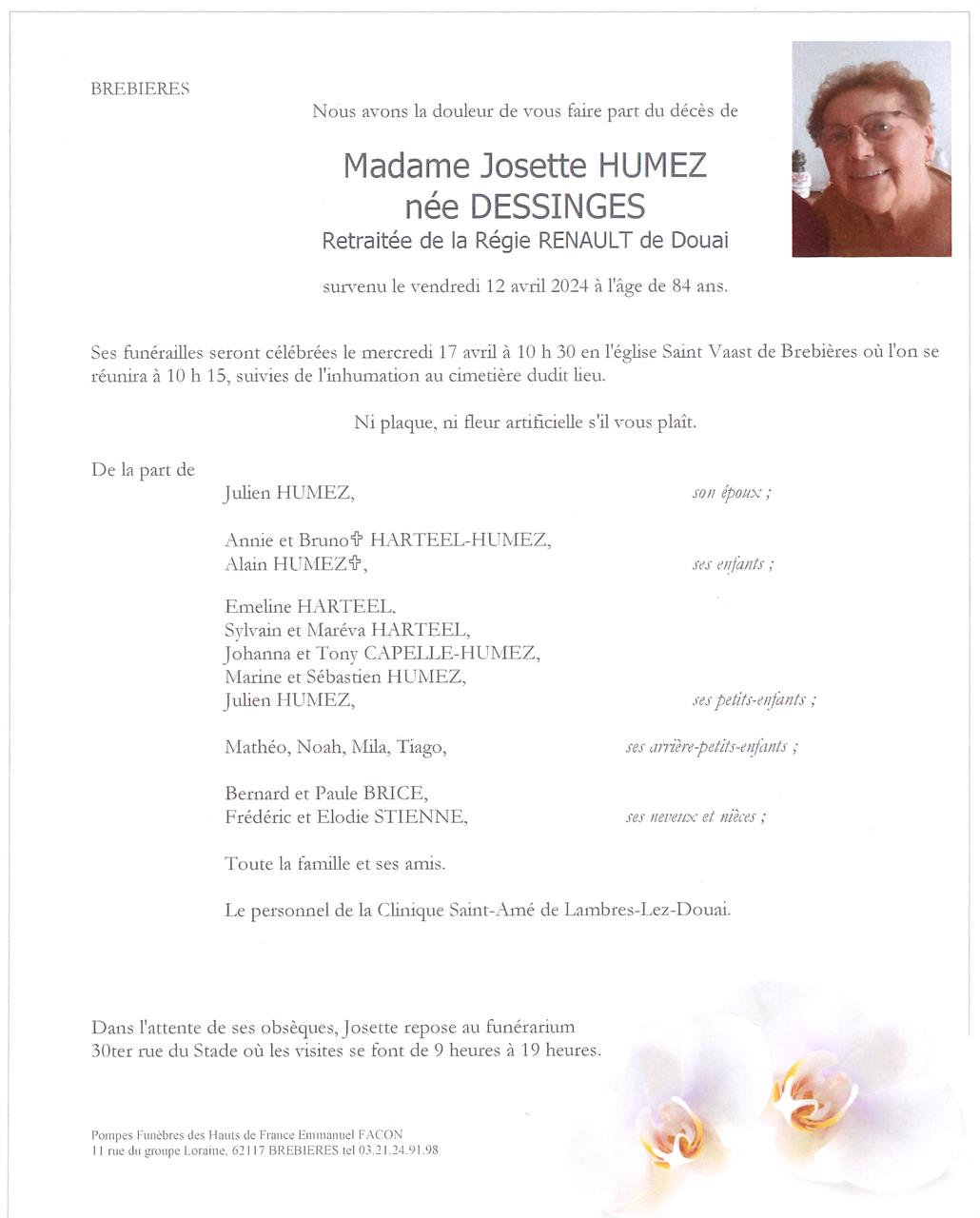 Madame Josette HUMEZ née DESSINGES