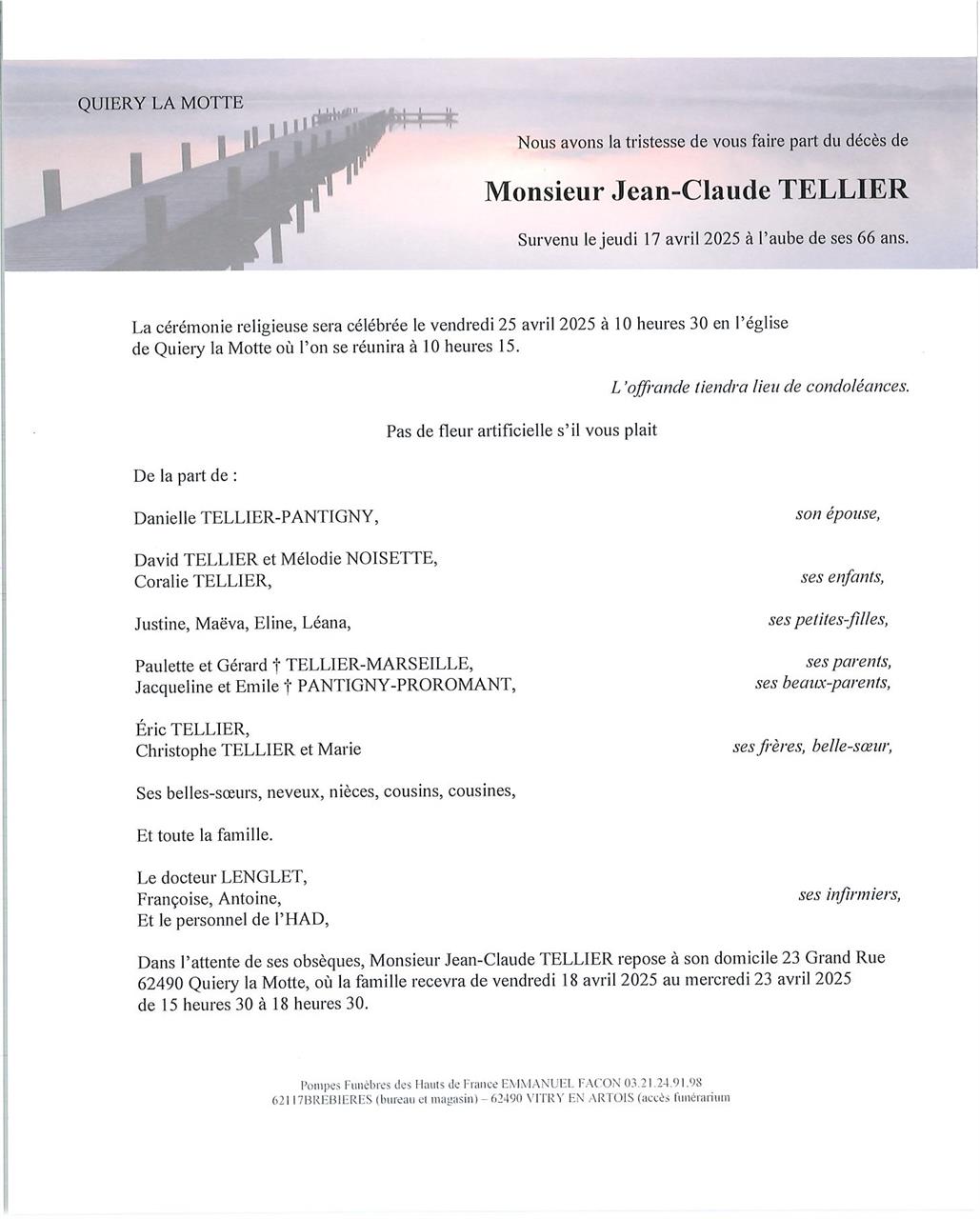 Décédé à Quiéry-la-Motte (62490, France) le jeudi 17 avril 2025 à l'âge de 65 ans