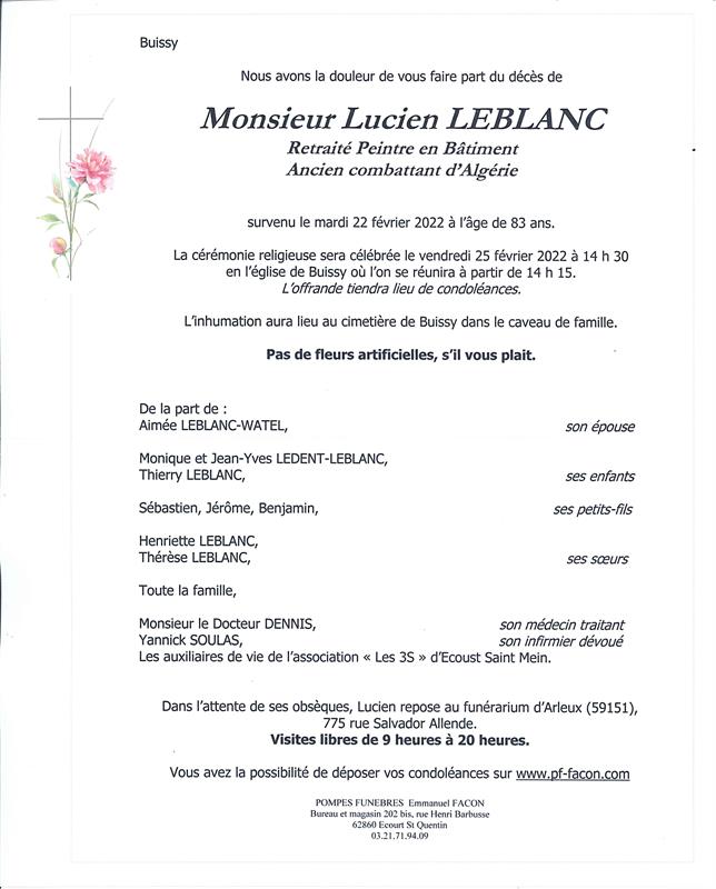 Décédé à Cambrai (59400, France) le mardi 22 février 2022 à l'âge de 83 ans