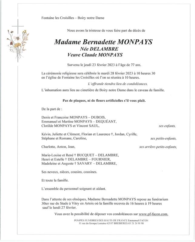Décédée à Oisy-le-Verger (62860, France) le jeudi 23 février 2023 à l'âge de 77 ans