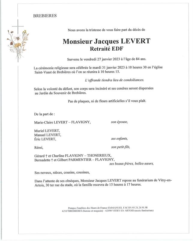 Décédé à Brebières (62117, France) le vendredi 27 janvier 2023 à l'âge de 84 ans