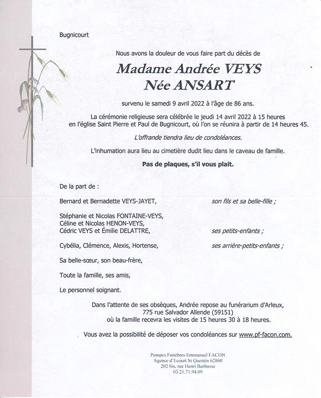 Madame Andrée VEYS née ANSART