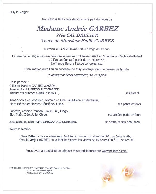 Madame Andrée GARBEZ née CAUDRELIER