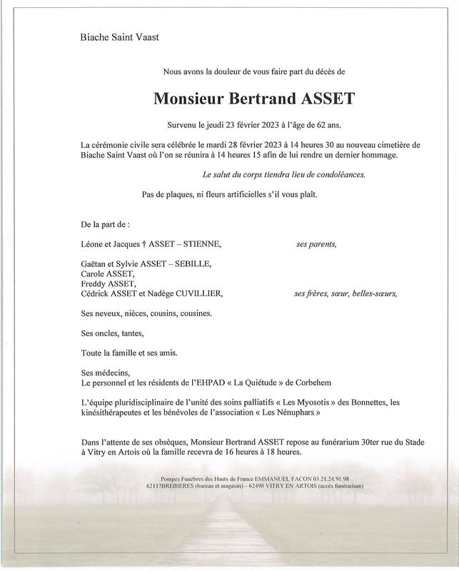 Décédé à Arras (62000, France) le jeudi 23 février 2023 à l'âge de 62 ans