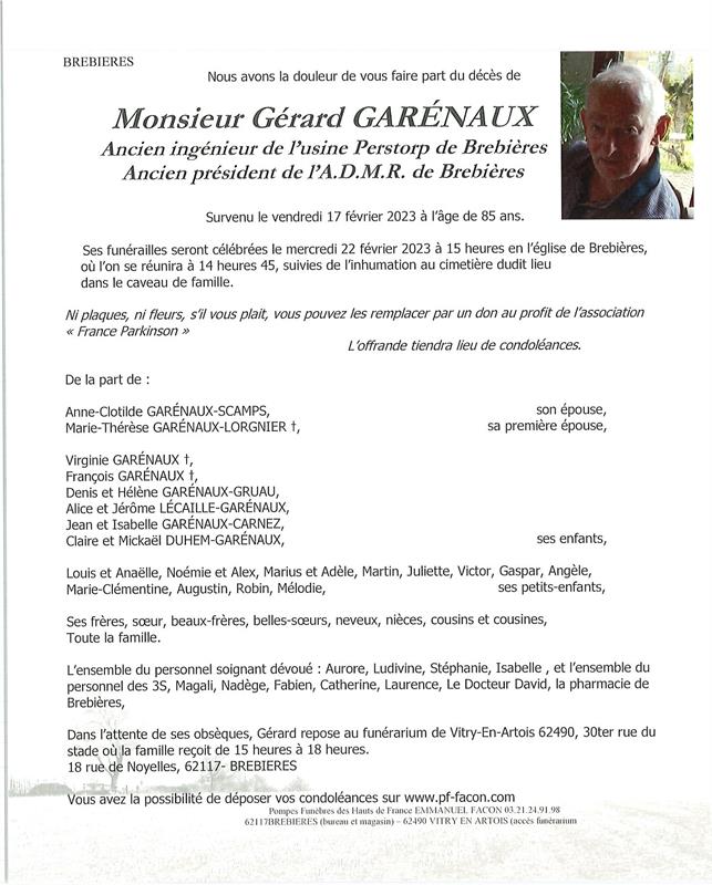 Décédé à Dechy (59187, France) le vendredi 17 février 2023 à l'âge de 85 ans