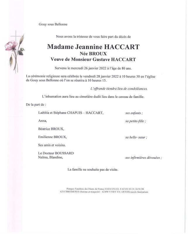 Décédée à Dechy (59187, France) le mardi 25 janvier 2022 à l'âge de 80 ans