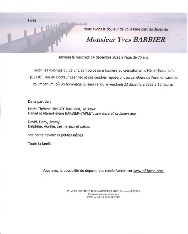 Décédé à Dechy (59187, France) le mercredi 14 décembre 2022 à l'âge de 70 ans