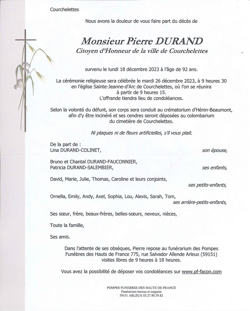 Décédé à Courchelettes (59552, France) le lundi 18 décembre 2023 à l'âge de 92 ans