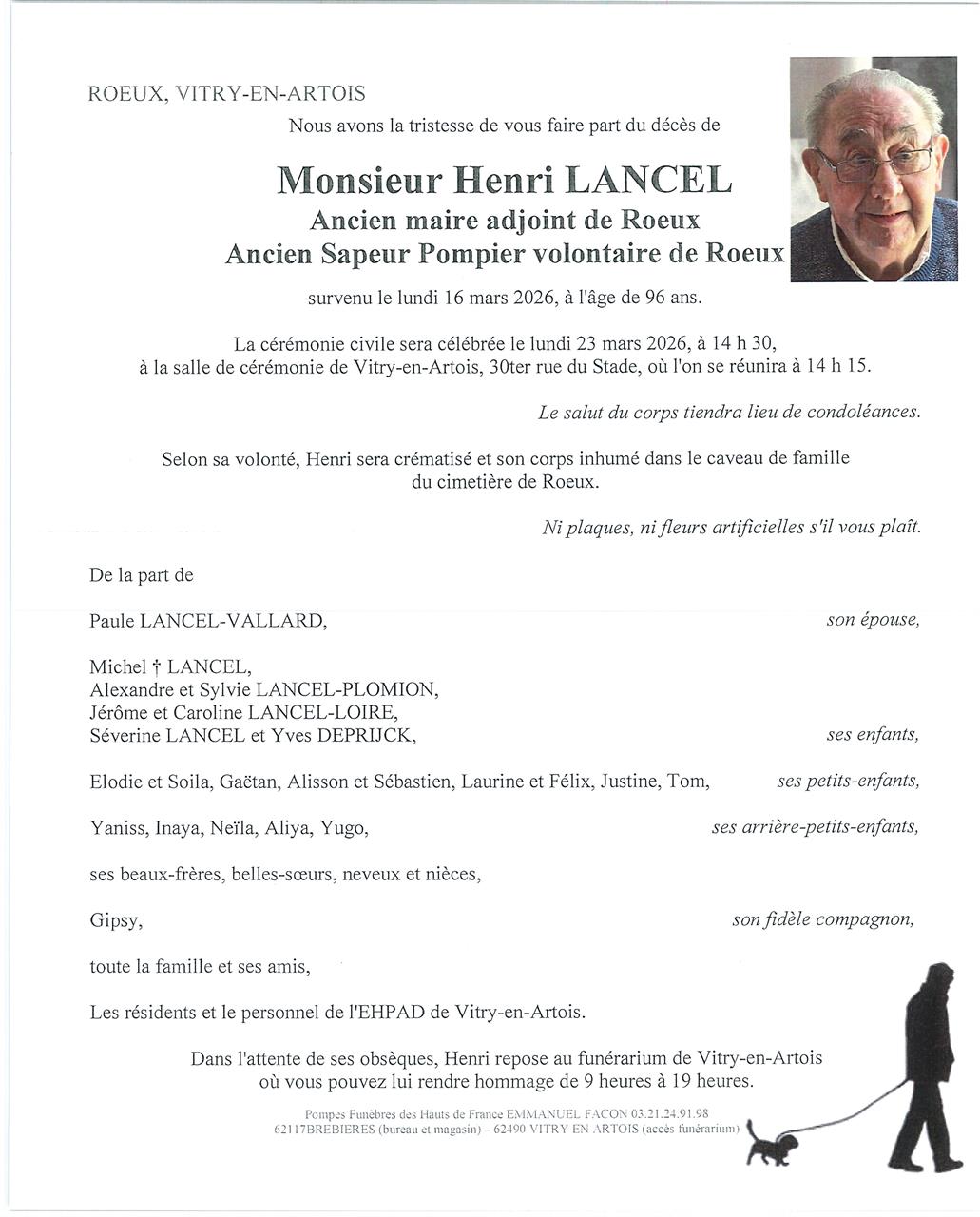 Monsieur Henri, Marcel, Joseph LANCEL