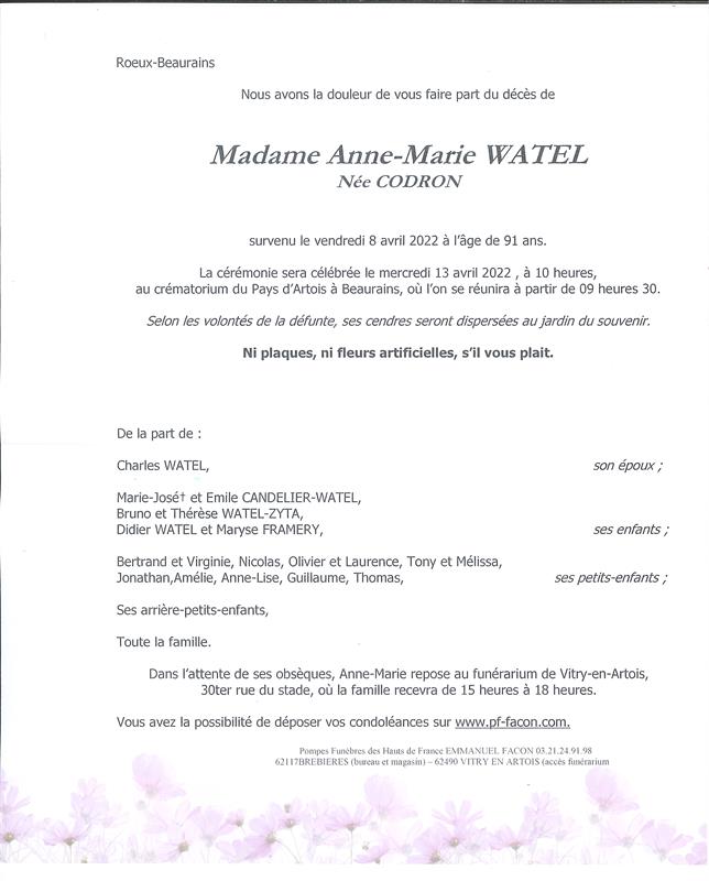 Madame Anne-Marie WATEL née CODRON