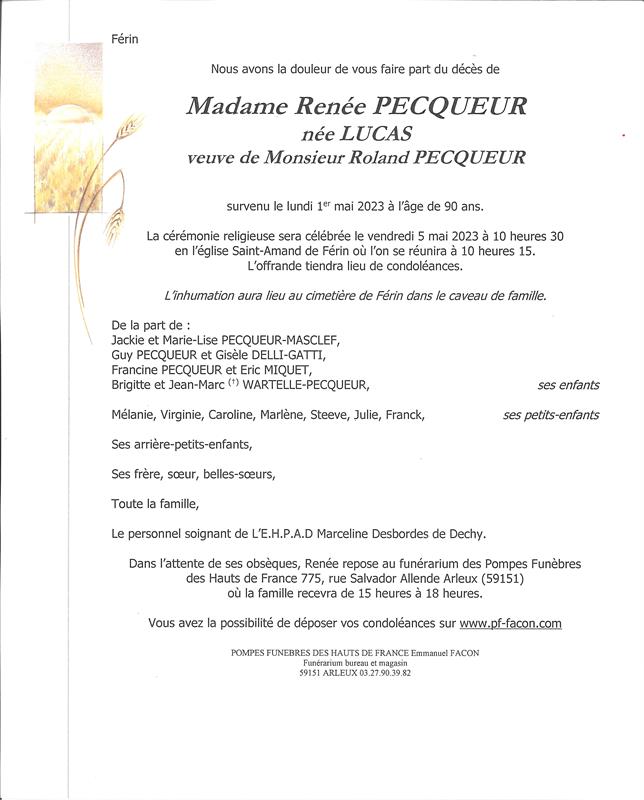 Décédée à Dechy (59187, France) le mardi 2 mai 2023 à l'âge de 90 ans