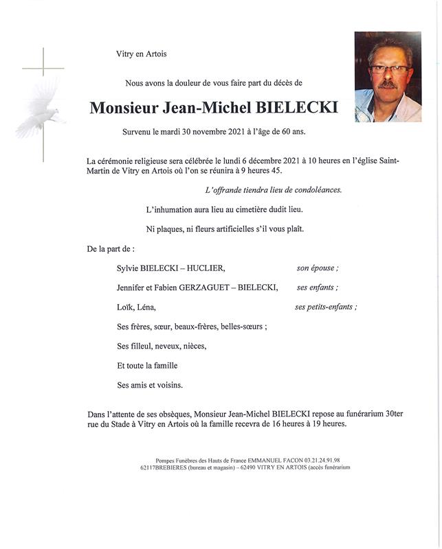 Décédé à Vitry-en-Artois (62490, France) le mardi 30 novembre 2021 à l'âge de 60 ans