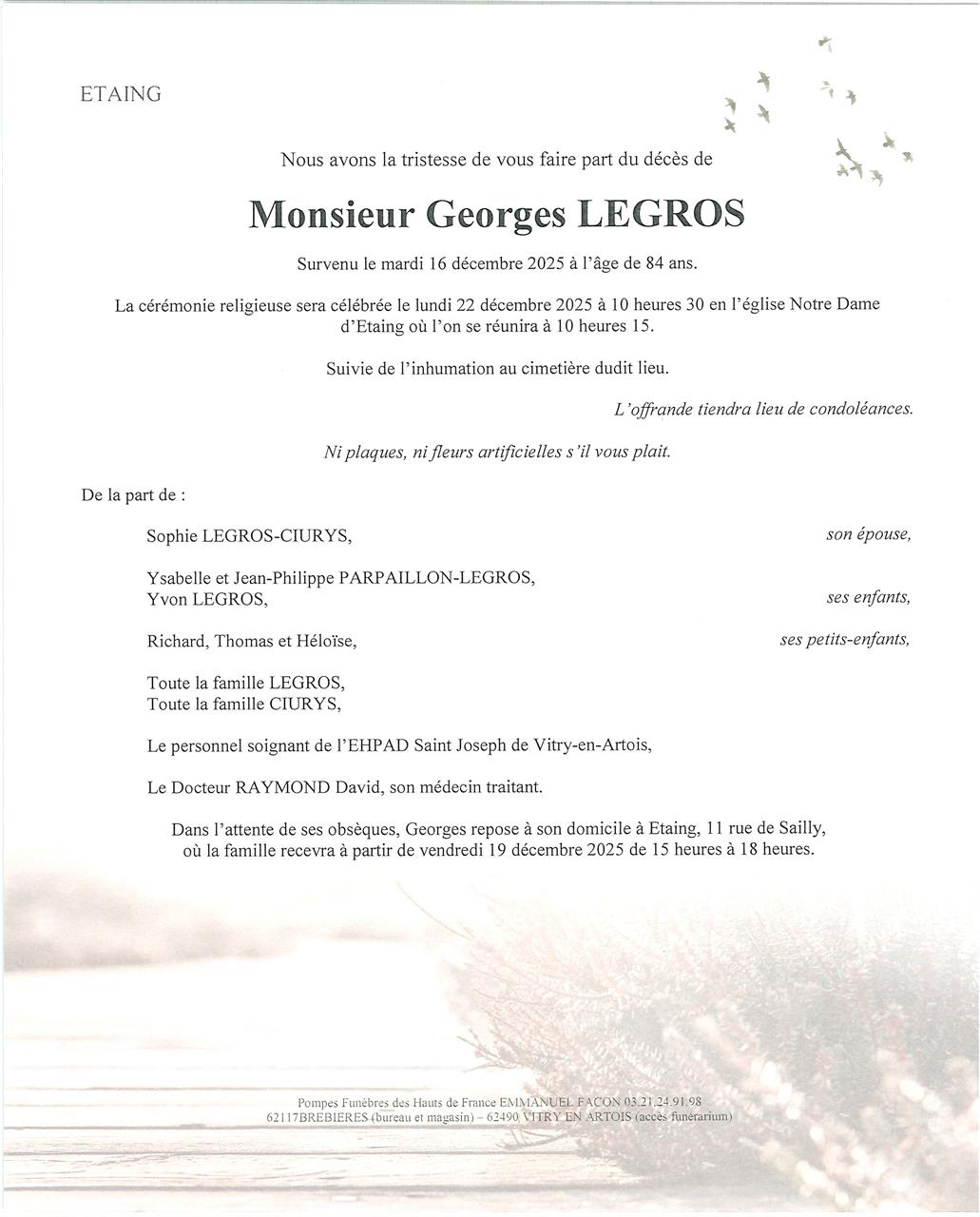 Décédé à Vitry-en-Artois (62490, France) le mardi 16 décembre 2025 à l'âge de 84 ans