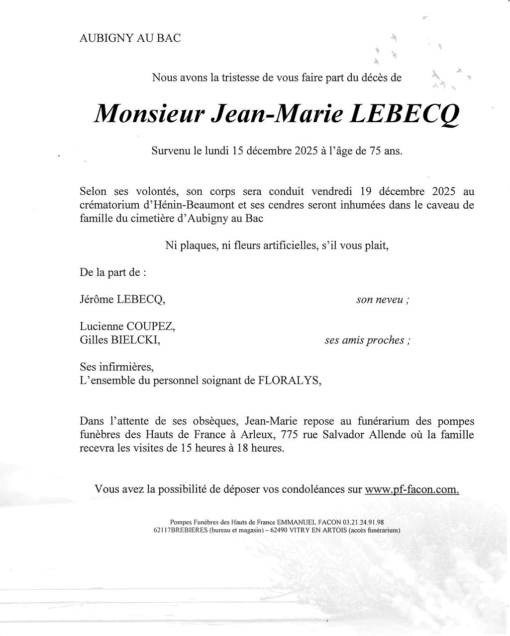 Monsieur Jean-Maire LEBECQ