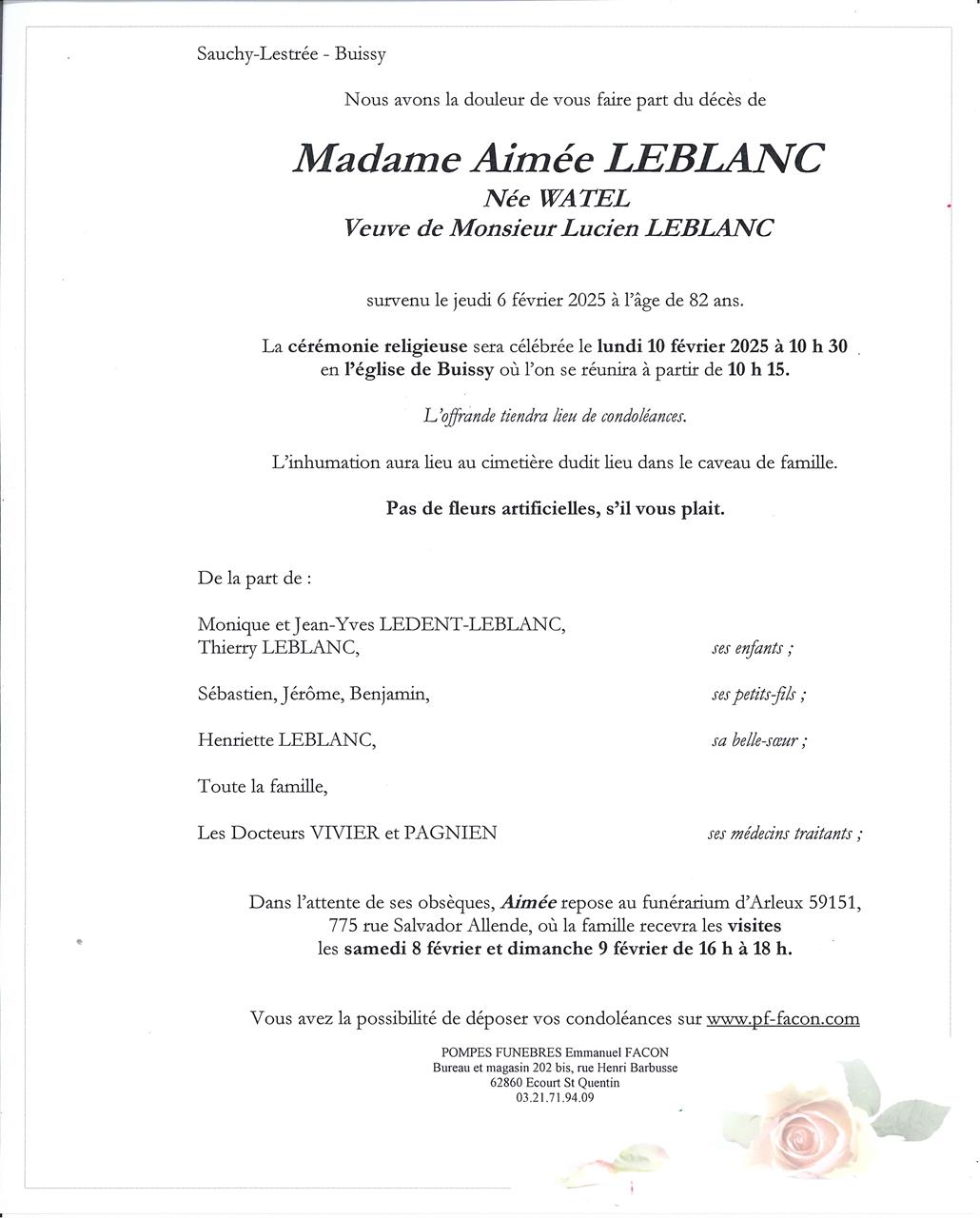 Veuve de Monsieur Lucien, Bénoni, Édouard LEBLANC