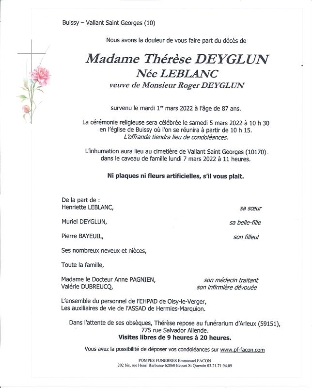 Madame Thérèse DEYGLUN née LEBLANC