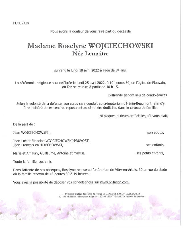 Epouse de Monsieur Jean WOJCIECHOWSKI