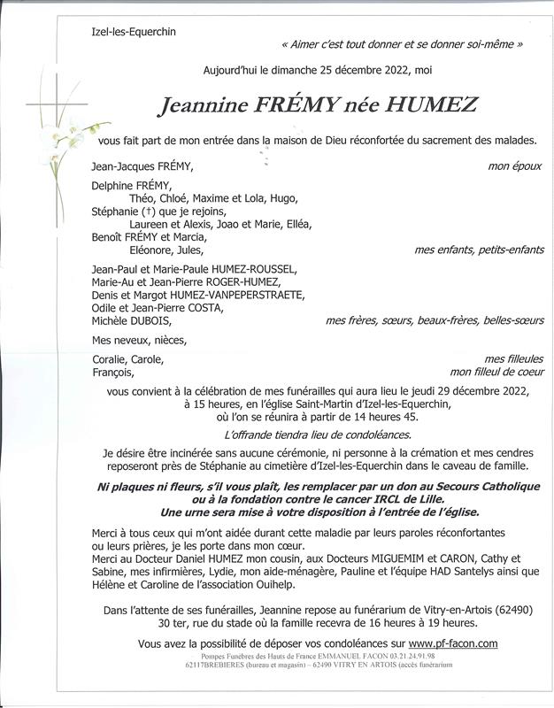 Madame Jeannine FREMY née HUMEZ