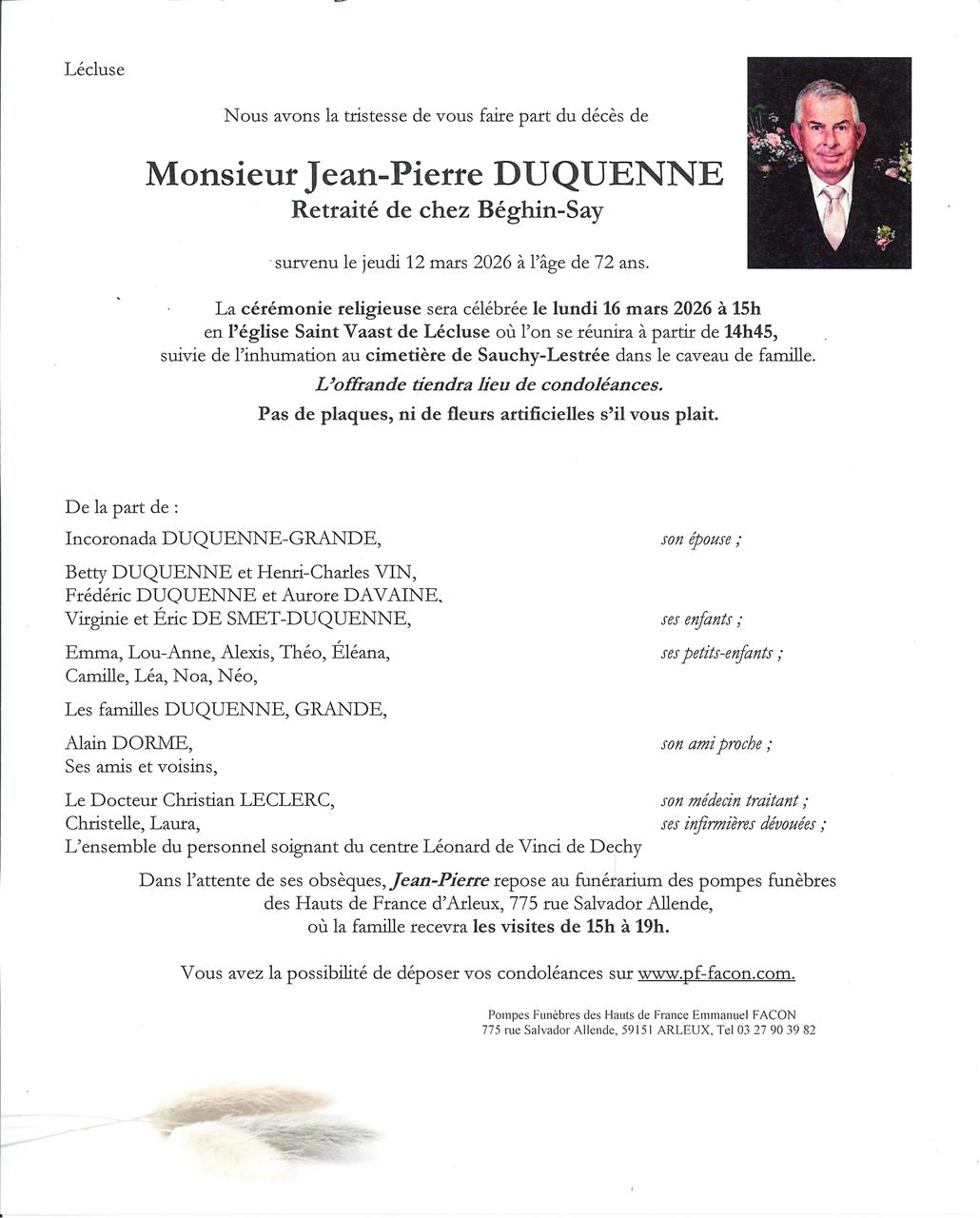 Décédé à Dechy (59187, France) le jeudi 12 mars 2026 à l'âge de 72 ans