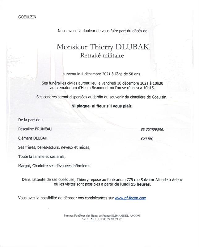 Décédé à Goeulzin (59169, France) le samedi 4 décembre 2021 à l'âge de 58 ans