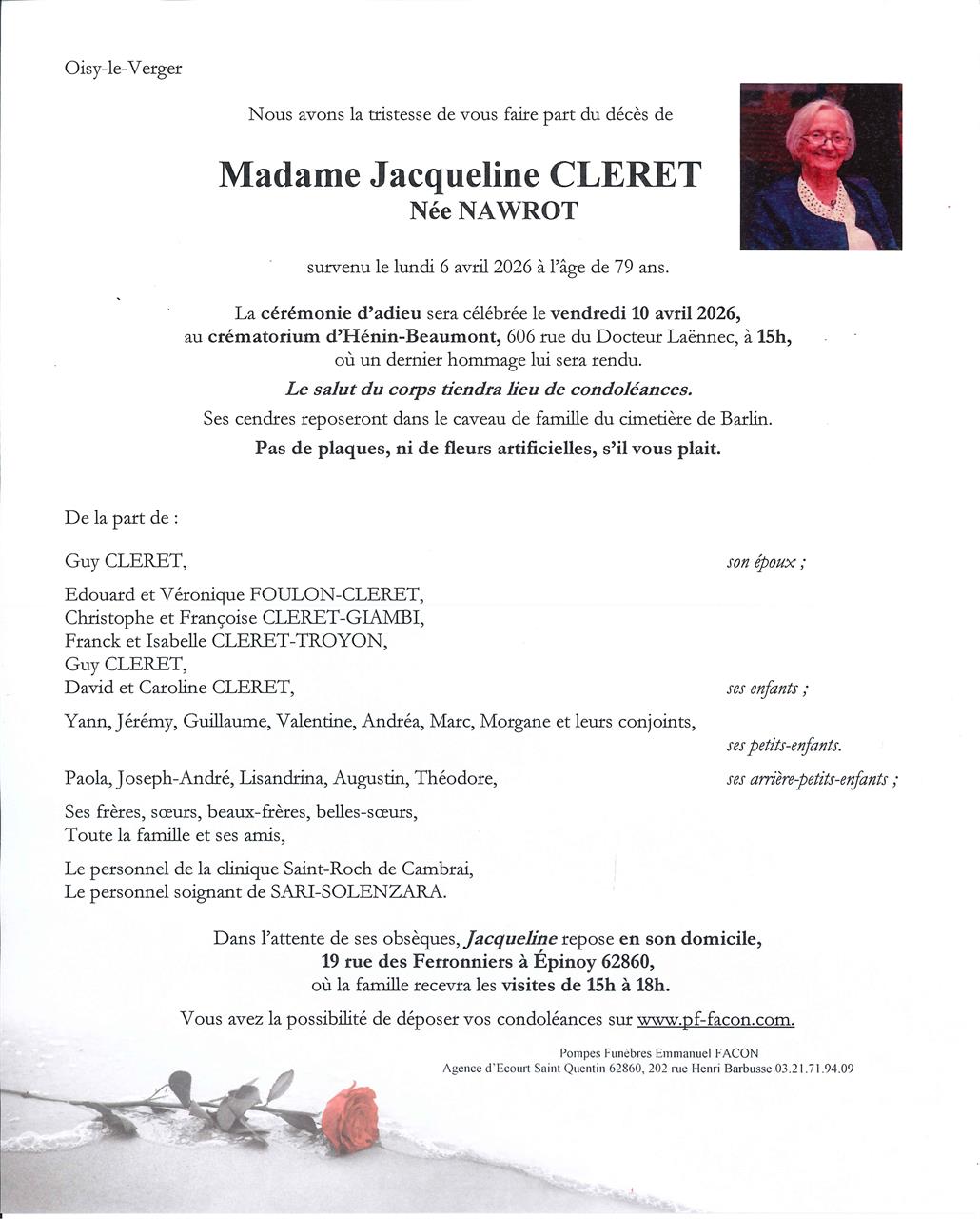 Décédée à Cambrai (59400, France) le lundi 6 avril 2026 à l'âge de 79 ans