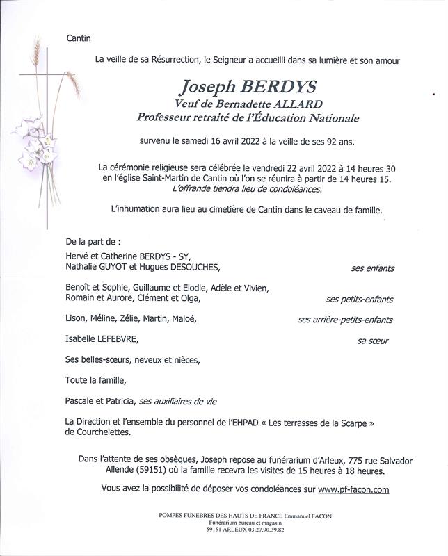 Décédé à Courchelettes (59552, France) le samedi 16 avril 2022 à l'âge de 91 ans