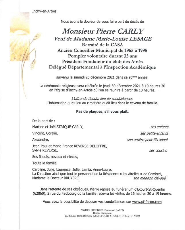 Né à Inchy-en-Artois (62860, France) le mardi 4 janvier 1927