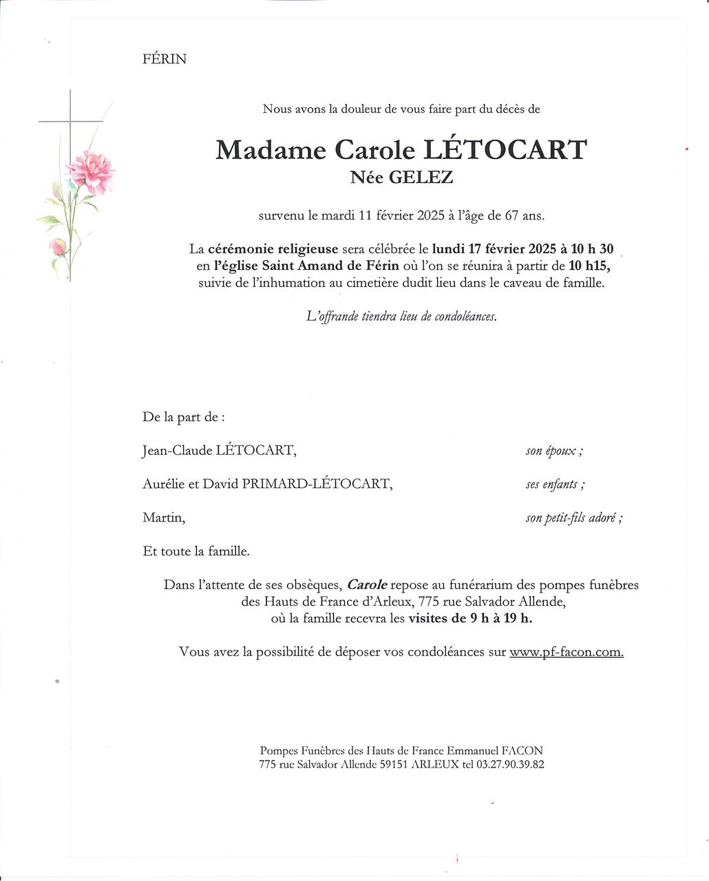 Madame Carole LÉTOCART née GELEZ