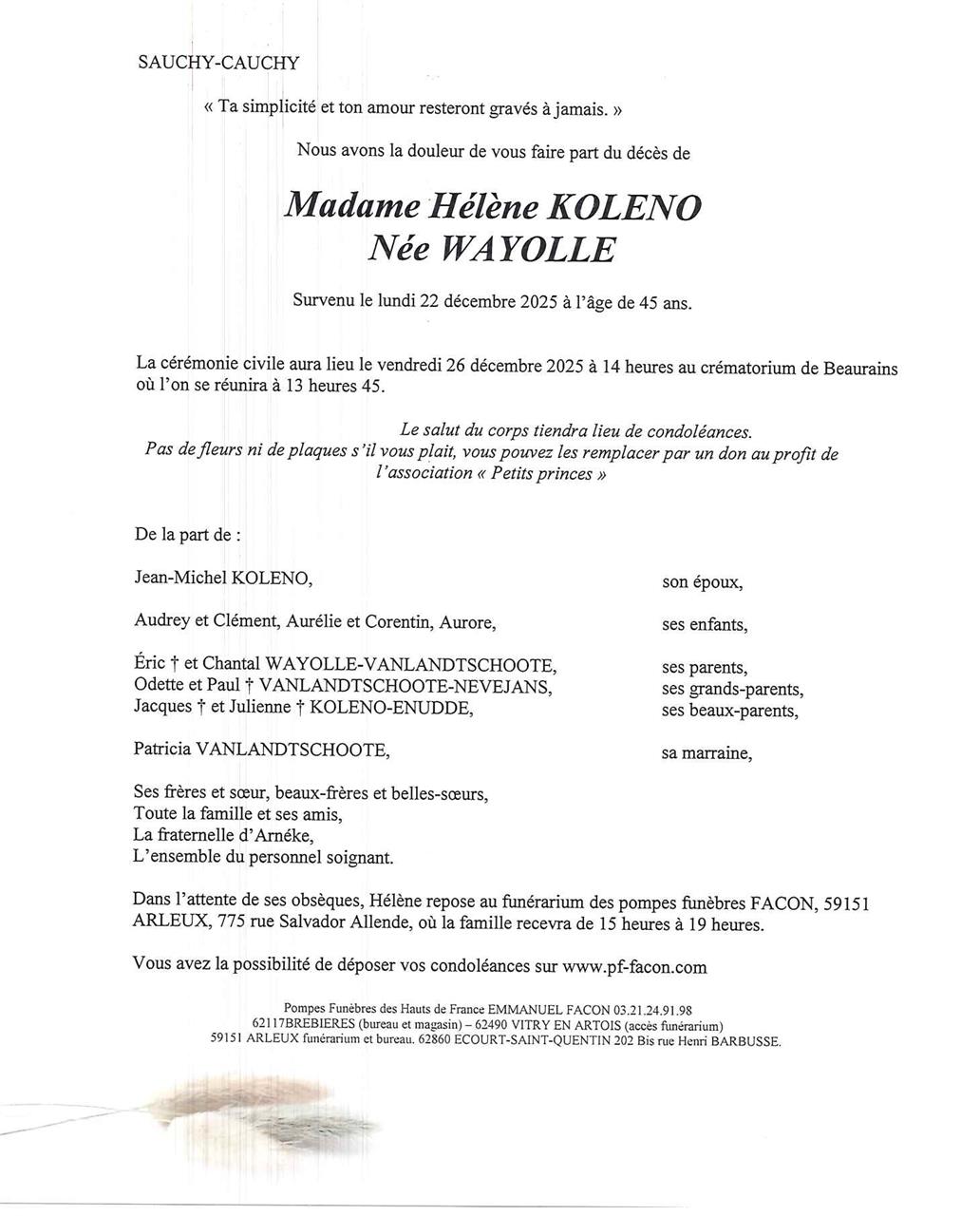 Madame Hélène Chantal Patricia KOLENO née WAYOLLE