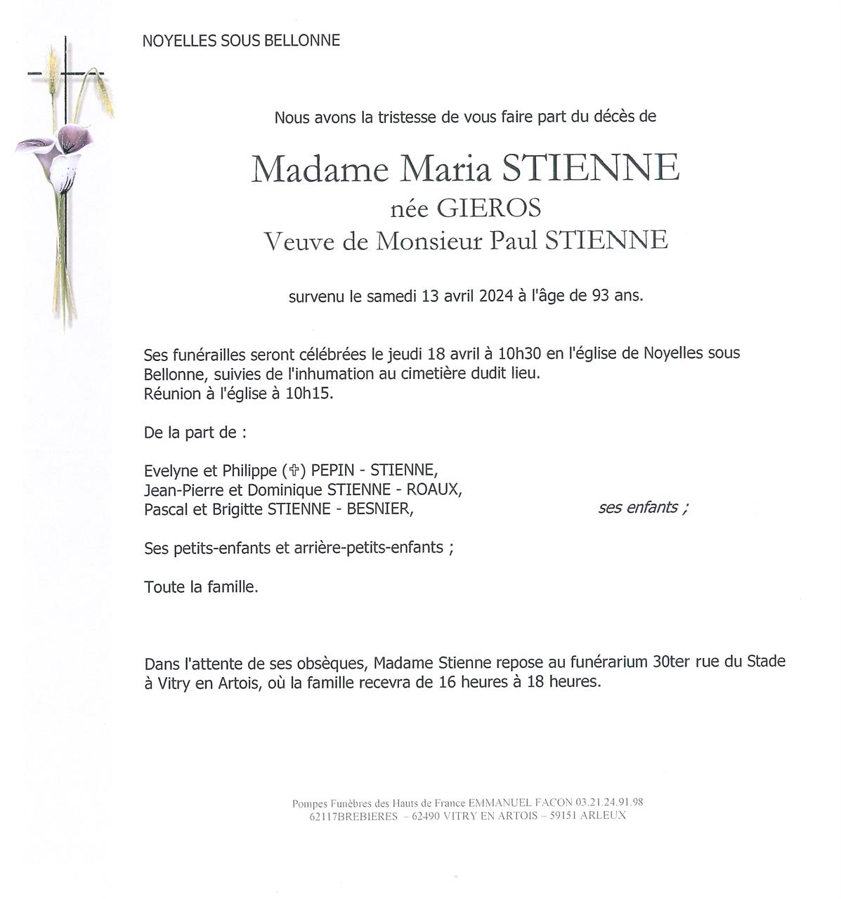 Madame Maria STIENNE née GIEROS